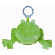 Bright green Frog, 12", unfolds to reveal playful words, textures and sounds. Durable ring for hanging on cribs, carseats and strollers. Your baby will have fun listening to the crinkles and sqeaks!