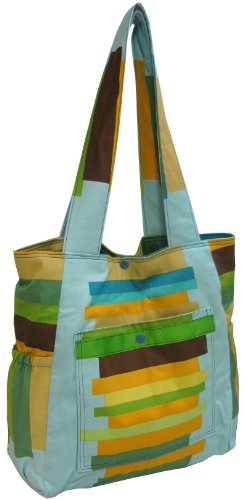 Loveybag diaperbag hand-made with 100% cotton boutique print in "Volumes" design. Each loveybag has a front pocket with a snap closure, two side pockets that can hold baby bottles or water bottles, and inner pockets sized to fit the changing pad, wipes, a tube of diaper ointment, and diapers. These pockets are also versatile when using a loveybag as a handbag. The dimensions of our loveybags are: 13" wide by 15" tall by 8" deep. Each Loveybag comes with a coordinating changing pad, a tube of Hemp Baby Salve, and a 12 in. x 12 in. ALOKSAK wetbag for holding wet diapers. ALOKSAK wet bags are made in the U.S.A. and are re-useable and recycleable.
