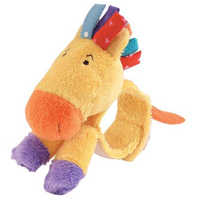 Our entertaining wrist rattle is made from extra soft plush fabric and features a Velcro closure to fit even the smallest of baby wrists. This great gift item makes for lots of giggles as baby learns how to make rattle sounds by shaking Nicker's hooves!
