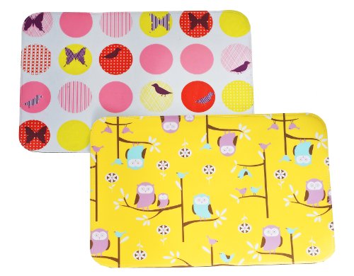 - Includes 1 owls place mat and 1 dots place mat