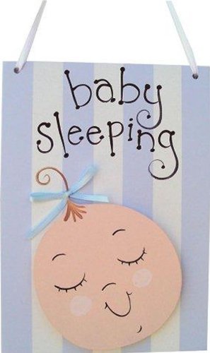 Boy Baby Doorhanger by Wish Upon A Star Let the world outside know when it's time to be quit with these sweet baby door knob hangers. Each hand crafted and hand painted doorhanger reads: "Baby Sleeping" in the most popular and playful children's themes. These high quality doorhangers add that finishing touch to your nursery--the perfect way to remind brothers and sisters to keep quiet while the baby naps! Complete the look with coordinating clocks, bookends, lamps, mirrors and picture frames. Wish Upon A Star offers the finest quality wooden nursery and children?s room decor accessories. Each wooden decor item from Wish Upon A Star is proudly hand-crafted and hand-painted in Fredricksburg, Texas, by the husband-and-wife team behind this adorable children?s decor brand. Each charming and whimsical collection from this brand offers many different decor pieces, making it easy to coordi