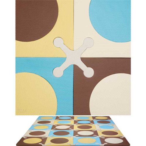 242002 Features: -20 blue, brown, and green smooth EVA foam tiles.-Safety rated for all ages.-Inner circles can be switched to create different designs. Options: -Available separately in other colors. Dimensions: -Each tile measures 14'' H x 14'' W.