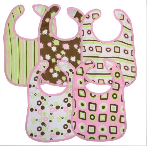 - 5 pack graphic print interlock/ knit terry feeder bib- girl assorted patterns, Graphic print interlock/ knit terry feeder bib, 5 pack girl bib set pink/ choc/ white 1-circle, 1- vertical dot, 1-square, 1-stripe, 1-dots. 1-stripes, 1-dot, 5 pack girl bib set pink/ choc/ white 1-circle, 1- vertical dot, 1-square, 1-stripe, 1-dots. 1-stripes, 1-dot