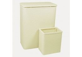 - Chelsea Collection Hamper and Matching Wastebasket Set-Cream
