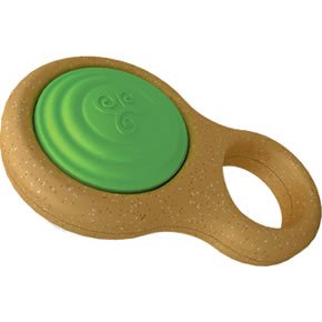 This eco-friendly rattle features a big handle for an easy grasp. It has contours that are smooth and safe for teething. It has a soft textured center insert that covers a gentle rattle.
