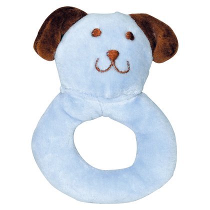The Detailed Description of green sprouts by i play Organic Velour Ring Rattle - Cornflower Dog