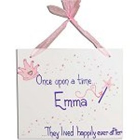 Princess Wall Hanging WALHA-PK-PR Once upon a time. This oversized wall hanger is a great accent for the chambers of any royal member. Our popular princess motif in pinks and lavenders surrounds the childs name optional. Wooden plaque measures 15 w x 13h