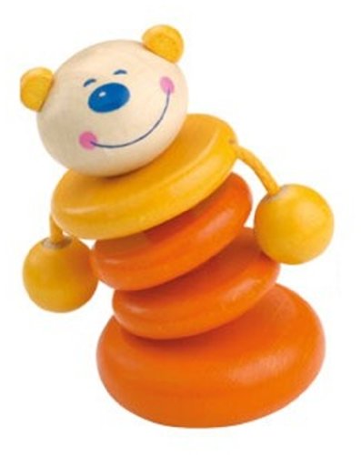 Made of beechwood, Haba Growl - Clutching Toy is built for babies. Little ones will enjoy grabbing this rattle and listening to its soft sound. Help kids develop their sensory perception while they tightly clutch this toy in their little hands. The attractive colors used in this rattler are water-based and nontoxic.