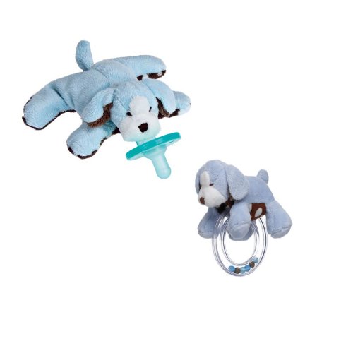 - Set includes: Mary Meyer Sweet Chocolate Puppy Ring Rattle Blue and WubbaNub Sweet Chocolate Blue Puppy Pacifier